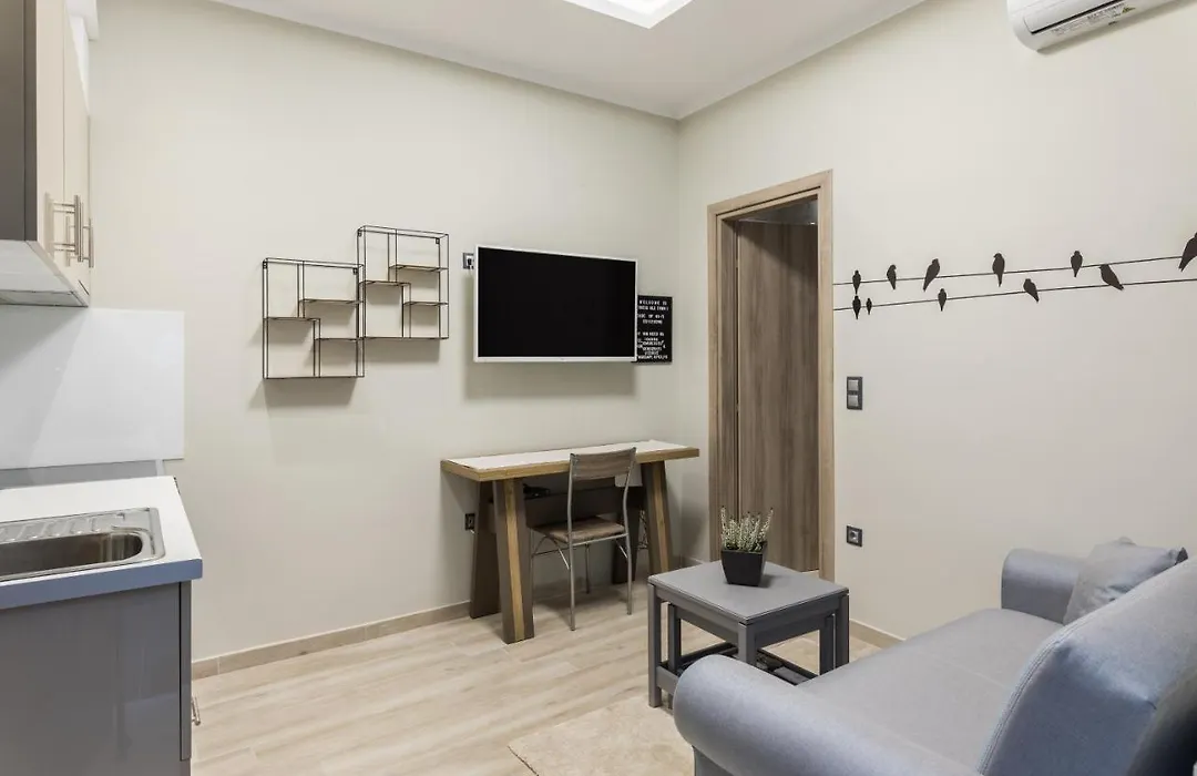 Oltre a servizi per la preparazione di tè/caffè, la struttura vanta una cucina completamente attrezzata con un bollitore elettrico, un frigo e una vetreria. La fermata dell'autobus Plateia Paulou Mela è a 850 metri dall'alloggio.